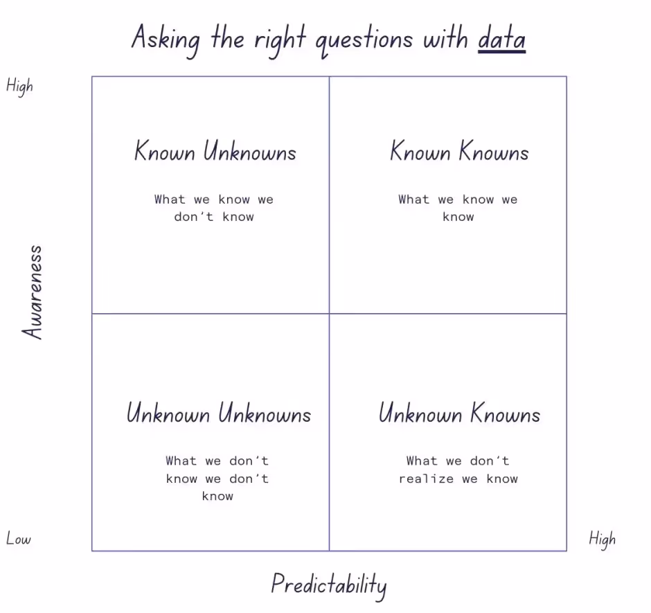 - Unknown Knowns (What we don’t realize we know) - Low Awareness, High Predictability